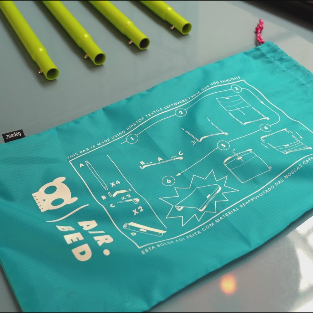 The Green Air.Bed is a super light elevated dog bed that is easy to transport.